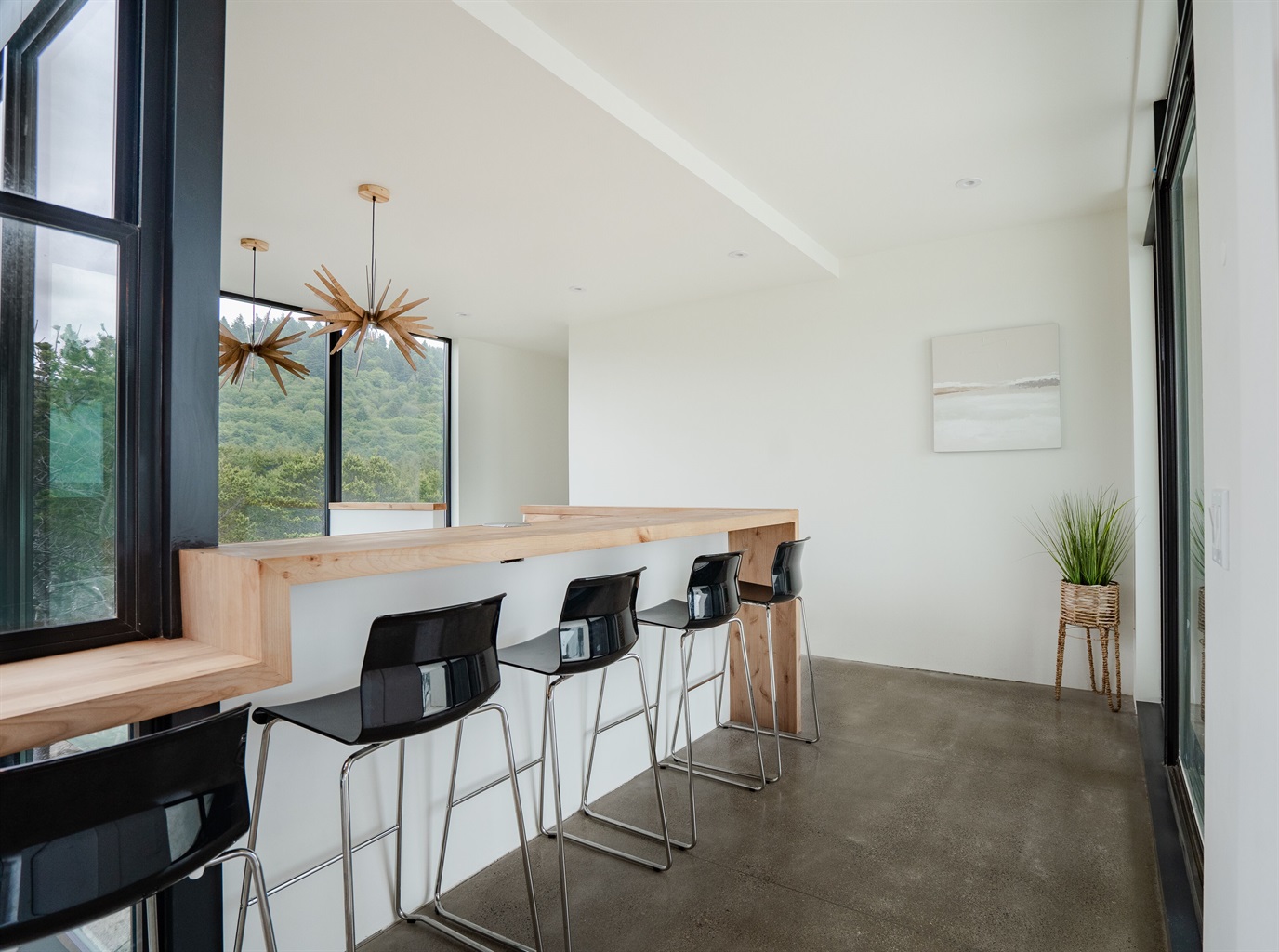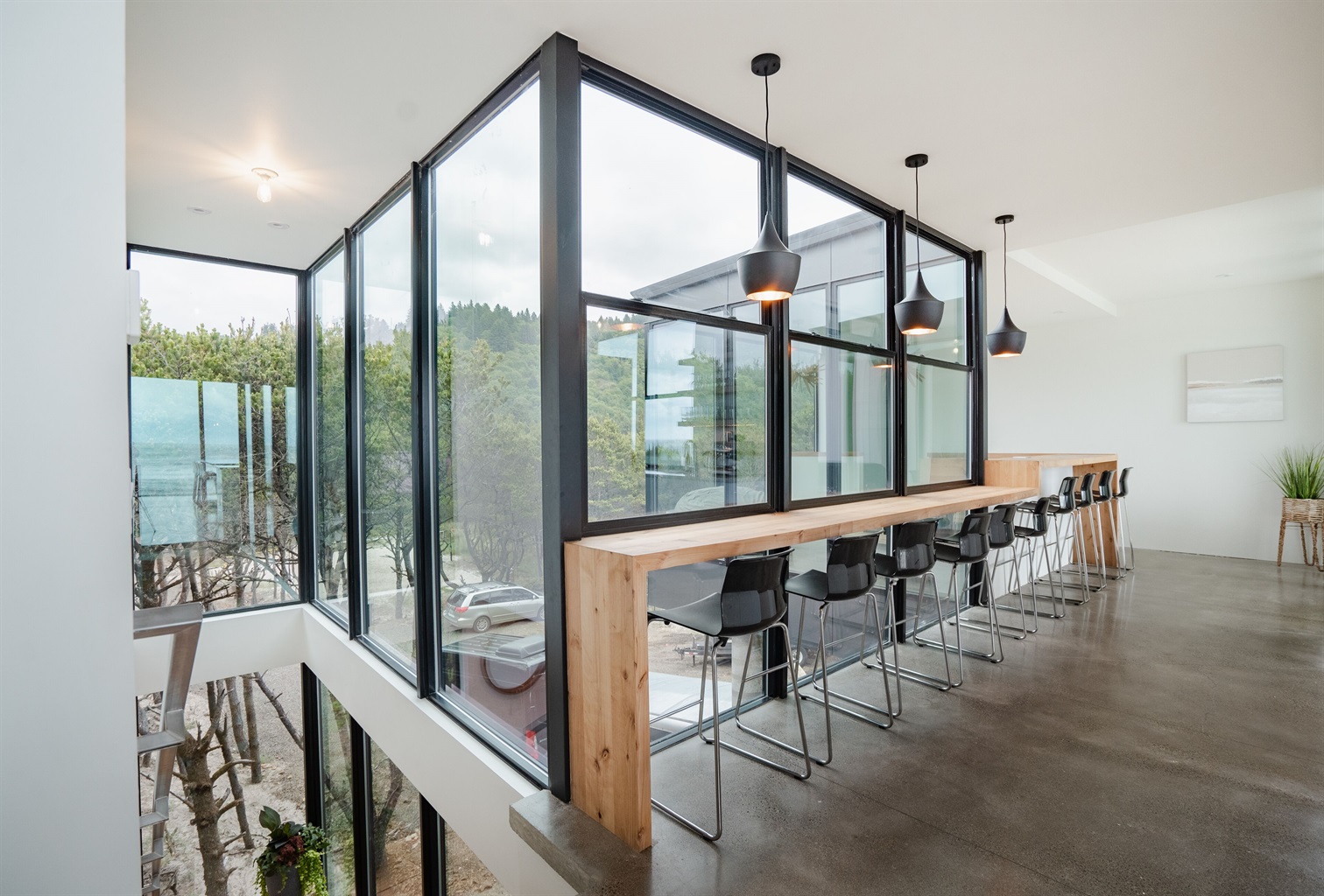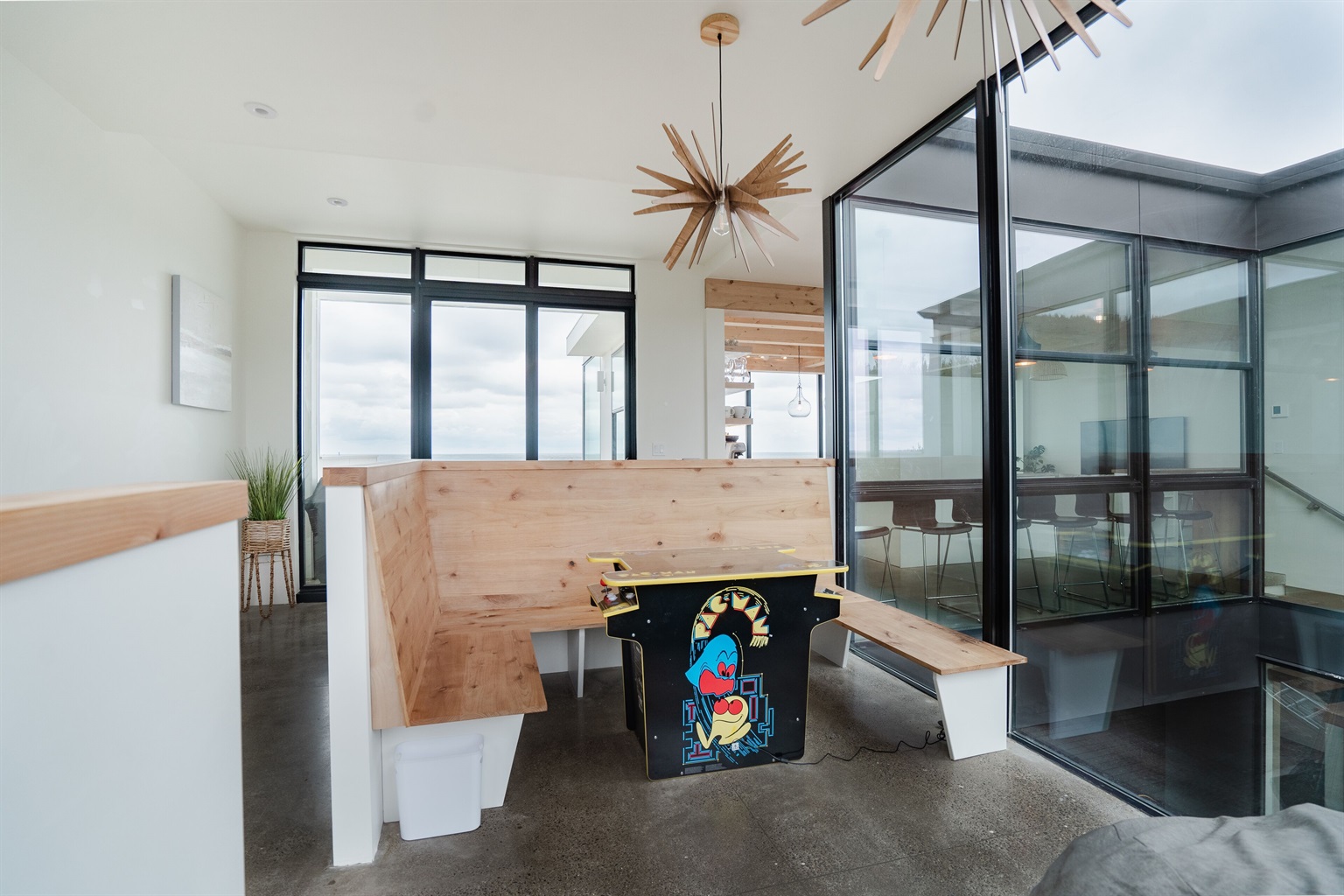 Floor to ceiling and wall to wall windows let you take in views of the Pacific ocean from Haystack Rock to Cape Lookout throughout the home, perfect for viewing whales, seals, sea lions, orcas, bald eagles, pelicans, and other NW wildlife. Forest Edge is a 6 bedroom/7 bathroom modern home cantilevered over the beach and forest, all on one floor with just the entry and parking under the home. The fully stocked kitchen features a giant Quartzite kitchen island for everyone to gather around with seating for 14, imported 36" induction cooktop, 36" Gaggenau oven, 2 sinks, Bosch dishwasher, Samsung bespoke all fridge & all freezer, Breville Espresso, microwave, 2nd fridge for drinks, and a bonus kids area under the island. Additional ocean facing bar seating and forest facing bar seating allow everyone to sit nearby. Kitchen windows and sliding glass doors open to a deck with glass railings & 36" propane griddle for outdoor living.